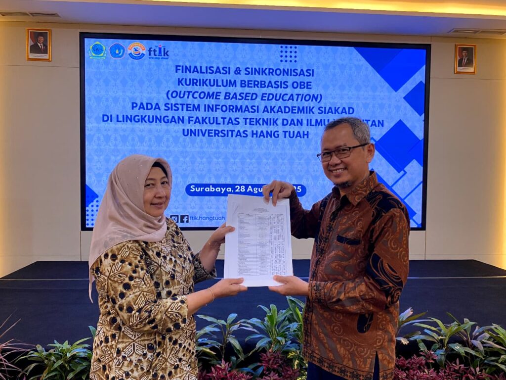 Surabaya – Fakultas Teknik dan Ilmu Kelautan (FTIK) Universitas Hang Tuah terus menunjukkan komitmennya dalam meningkatkan mutu pendidikan tinggi melalui penerapan kurikulum berbasis Outcome Based Education (OBE). Dalam upaya mewujudkan visi sebagai fakultas unggulan di bidang ipteks kelautan dan kemaritiman, FTIK menyelenggarakan kegiatan Finalisasi dan Sinkronisasi Kurikulum OBE pada Sistem Informasi Akademik (SIAKAD)