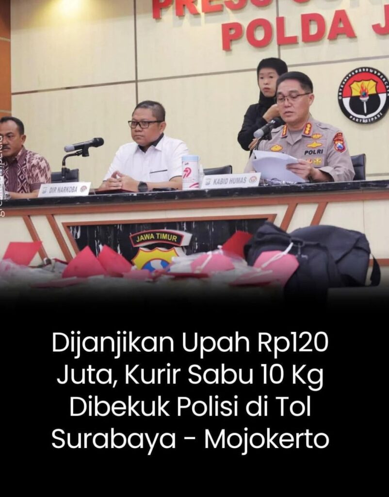 SURABAYA – Direktorat Reserse Narkoba (Ditresnarkoba) Polda Jawa Timur kembali berhasil mengungkap kasus peredaran narkotika jaringan lintas provinsi. Seorang pengedar berinisial RG (25), warga Bandung, diringkus di rest area Kilometer 726B Tol Surabaya – Mojokerto (Sumo), tepatnya di wilayah Kecamatan Weringinanom, Kabupaten Gresik, Jawa Timur. Dari tangan pelaku, petugas berhasil menyita barang bukti sabu-sabu seberat 10 kilogram.