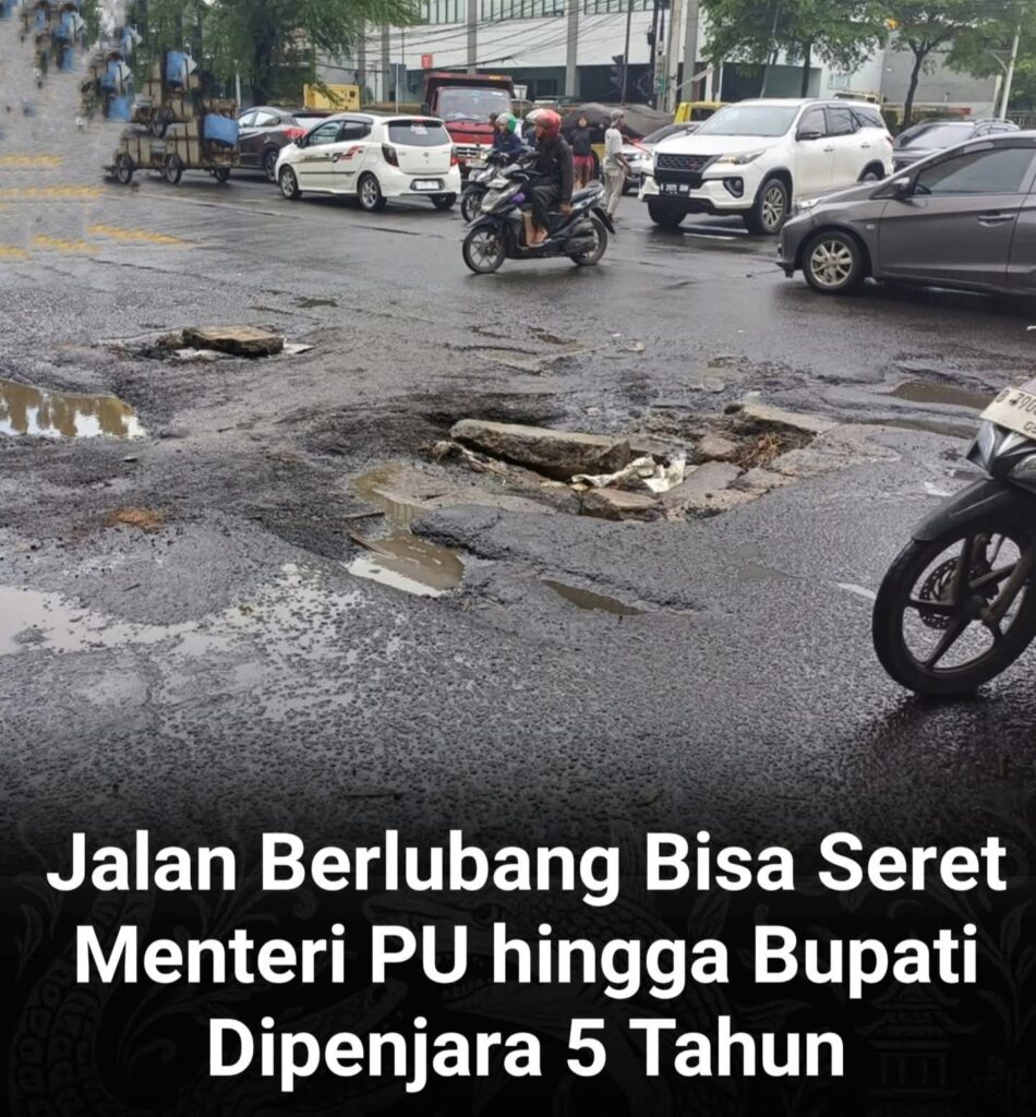 Tak tanggung-tanggung, peraturan hukum yang berlaku menetapkan bahwa para pejabat mulai dari Menteri Pekerjaan Umum (PU), Gubernur, hingga Bupati dan Wali Kota, berisiko mendapatkan hukuman penjara hingga 5 tahun jika terbukti membiarkan lubang jalan atau kerusakan infrastruktur jalan memakan korban jiwa atau menyebabkan kecelakaan serius akibat kelalaian dalam pemeliharaan.