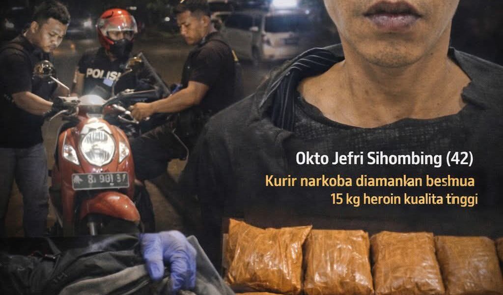 Di tengah deru mesin kendaraan yang sesekali melintas, sebuah motor Honda Scoopy dihentikan paksa. Di atasnya, dua orang pria tak berkutik saat disergap petugas. Salah satunya adalah Okto Jefri Sihombing (42), pria yang malam itu mendekap erat sebuah tas ransel abu-abu. Secara kasat mata, tas itu tampak sangat biasa. Namun, ketika petugas menarik resletingnya, terungkaplah muatan aslinya: 15 bal heroin kualitas wahid seberat 15 kilogram. Sebuah jumlah yang fantastis untuk peredaran di jalur darat, yang ditaksir memiliki nilai jutaan bahkan puluhan juta rupiah di pasar gelap.