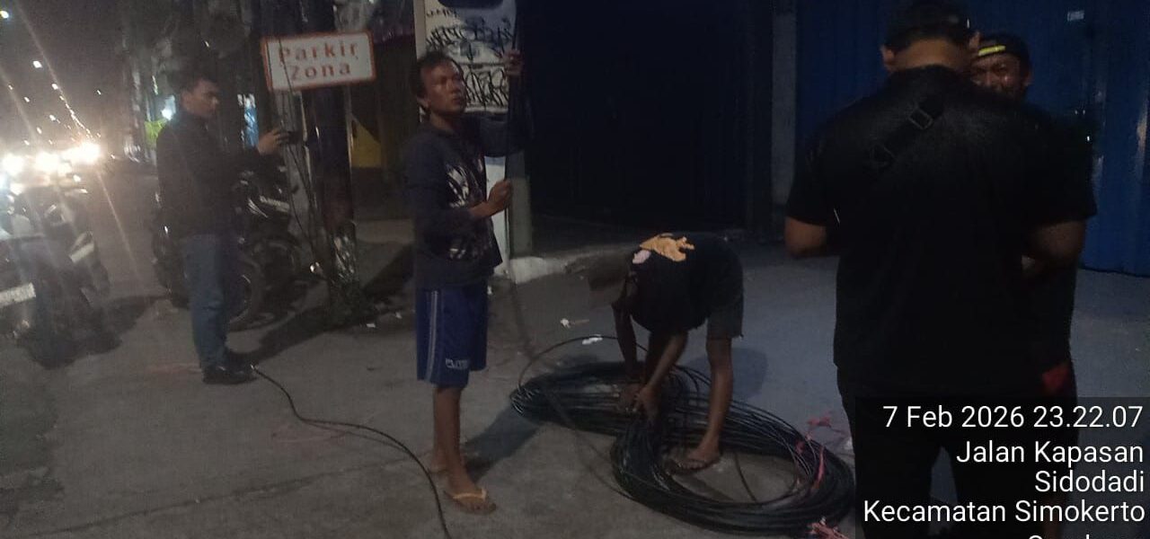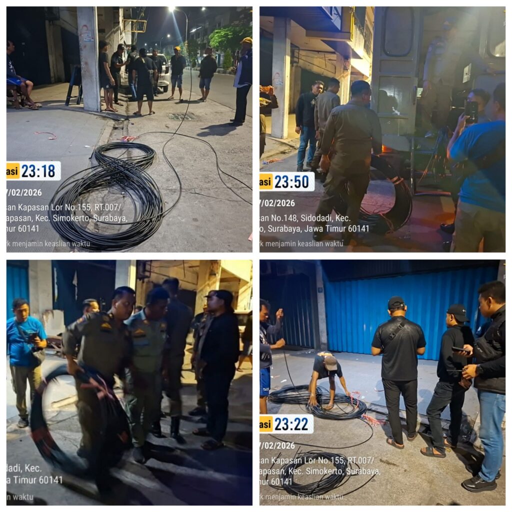 Kabel WiFi Invorte Ilegal Kembali Beraksi Tengah Malam, Satpol PP Surabaya Tindak Tegas dan Amankan  yang Kerja di Bawah Pengawasan Kantor Satpol PP