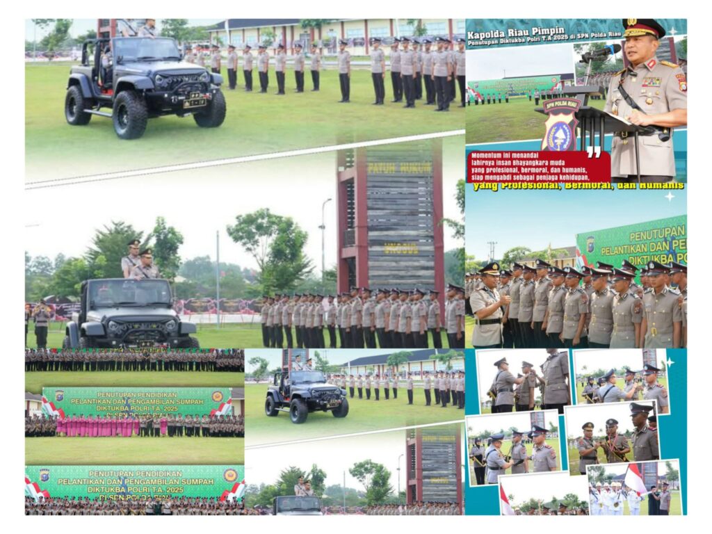 SPN Polda Riau – Upacara Penutupan Pendidikan Pembentukan Bintara dan Tamtama Polri Tahun Anggaran 2025 di SPN Polda Riau bukan sekadar seremoni pelantikan, melainkan puncak dari transformasi kepemimpinan yang digagas Kapolda Riau. Momentum ini menandai lahirnya generasi “Pemimpin Pelayan”: insan Bhayangkara muda yang profesional, bermoral, humanis, dan memiliki jiwa kepemimpinan transformatif untuk melayani masyarakat dengan sepenuh hati.