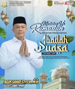 Mengakhiri ucapannya, Kepala Kejaksaan Tinggi Jawa Timur, Agus Sahat ST, S.H., M.H., menyampaikan doa dan harapan tulusnya: “Selamat menunaikan ibadah puasa bagi seluruh umat Muslim. Semoga Allah SWT senantiasa melimpahkan kekuatan, kesehatan, dan kemuliaan dalam setiap langkah kehidupan kita di bulan yang penuh berkah ini, dan kita semua dapat meraih kemenangan di hari yang fitri nanti.”
