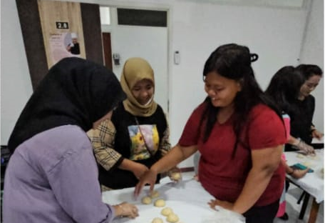 Para peserta dengan antusias mengikuti setiap tahapan pelatihan—mulai dari pengenalan bahan, proses pembuatan adonan, teknik menggoreng, hingga penyajian donat dan kue. Selain itu, Chef Sam juga membagikan cara menghitung modal dan menentukan harga jual, yang menjadi aspek penting dalam membangun usaha kuliner.