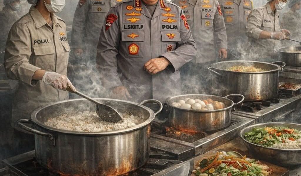 Di sebuah ruangan yang steril, jauh dari hiruk-pikuk jalanan atau ketegangan ruang interogasi, Kapolri Jenderal Listyo Sigit Prabowo berdiri tegak. Di sekelilingnya bukan peta operasi penangkapan buronan kelas kakap, melainkan barisan staf dapur berseragam rapi lengkap dengan masker dan sarung tangan. Ini bukan adegan sinetron tentang alih profesi. Ini adalah wajah baru institusi kepolisian kita hari ini.