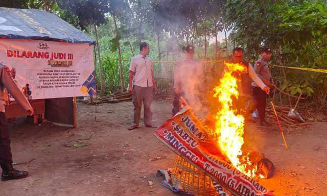 Meski tidak menemukan pelaku di lapangan, tim kepolisian tetap melakukan langkah tegas dengan membongkar dan membakar seluruh sarana prasarana yang disiapkan untuk mendukung praktik sabung ayam.