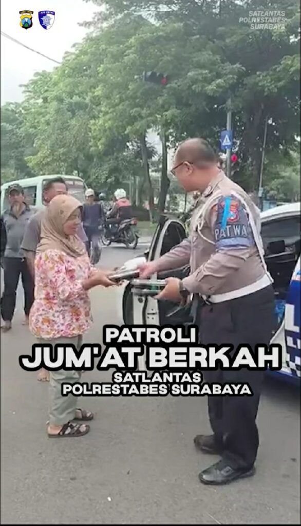 Surabaya, 28 November 2025 – Satuan Lalu Lintas (Satlantas) Polrestabes Surabaya kembali menunjukkan kepeduliannya terhadap masyarakat dengan menggelar kegiatan “Patroli Jum’at Berkah”. Kegiatan ini dilaksanakan setiap hari Jum’at dengan menyasar masyarakat yang membutuhkan, seperti tukang becak, pedagang kaki lima, dan warga kurang mampu lainnya.