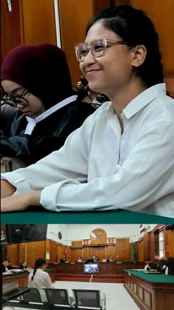 Foto : Terdakwa Gaya Desicha Fani Hansa mantan kasir, menjalani sidang agenda Tuntutan JPU, diruang Cakra PN.Surabaya,Kamis (20/11/2025).