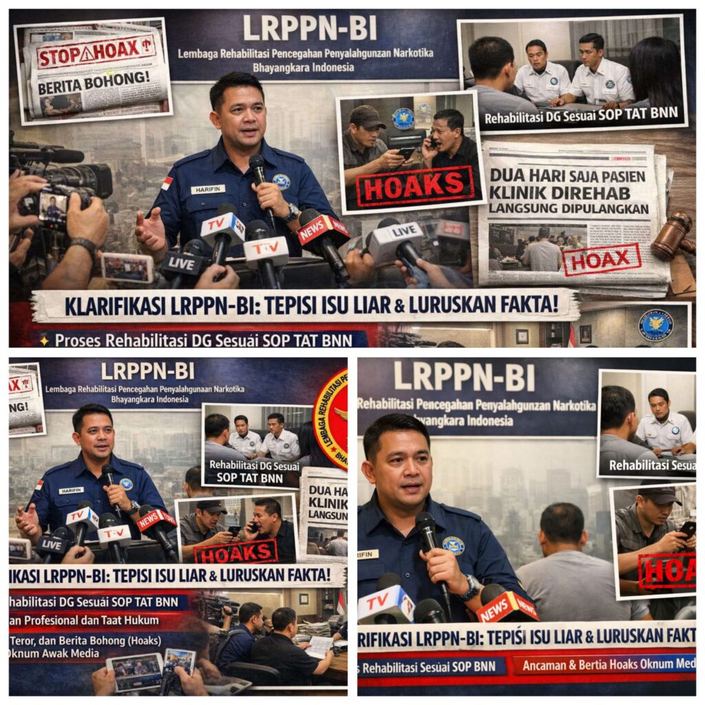Humas LRPPN-BI, Harifin, menegaskan bahwa narasi yang menyebutkan pasien hanya menjalani rehabilitasi selama dua hari sebelum dipulangkan demi keuntungan pribadi adalah tidak benar dan merupakan berita bohong (hoaks). Klarifikasi ini sekaligus menepis isu liar yang beredar dan berpotensi merusak reputasi lembaga yang berdedikasi dalam penanganan penyalahgunaan narkotika.