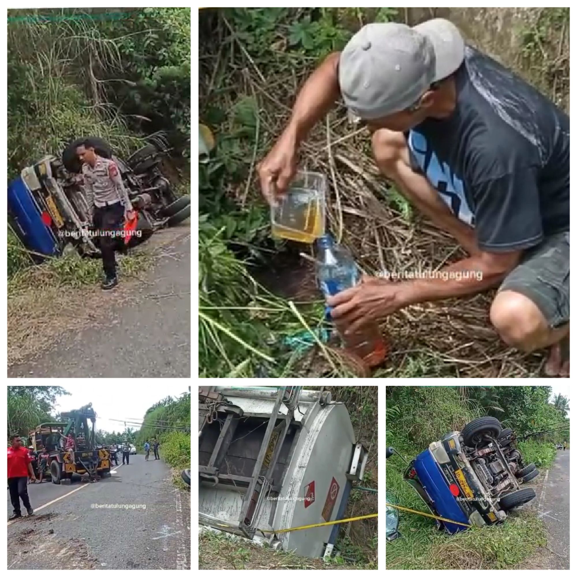 Petugas kepolisian dari Polres Tulungagung segera tiba di lokasi kejadian untuk melakukan pengamanan dan olah Tempat Kejadian Perkara (TKP). Petugas juga dibantu oleh warga sekitar untuk mengevakuasi truk tangki yang terguling tersebut.