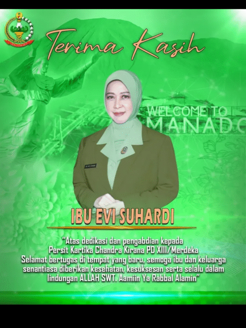MANADO, 14 Desember 2025 – Ucapan terima kasih dan apresiasi setinggi-tingginya mengalir deras untuk Ibu Evi Suhardi atas dedikasi dan pengabdiannya yang tak ternilai selama bertugas di Persit Kartika Chandra Kirana PD XIII/Merdeka. Sosok yang dikenal ramah dan penuh perhatian ini telah memberikan kontribusi yang besar dalam memajukan organisasi Persit dan memberikan dukungan kepada para prajurit TNI AD beserta keluarga.