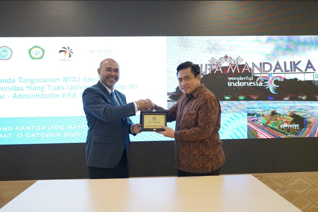 Mandalika, 17 Oktober 2025 — Universitas Hang Tuah (UHT) Surabaya bersama Universitas Islam Al-Azhar (UNIZAR) Mataram dan Administrator Kawasan Ekonomi Khusus (KEK) Mandalika menandatangani Nota Kesepahaman (MoU) dan Perjanjian Kerja Sama (MoA) di Aula ITDC Mandalika, Lombok Tengah.